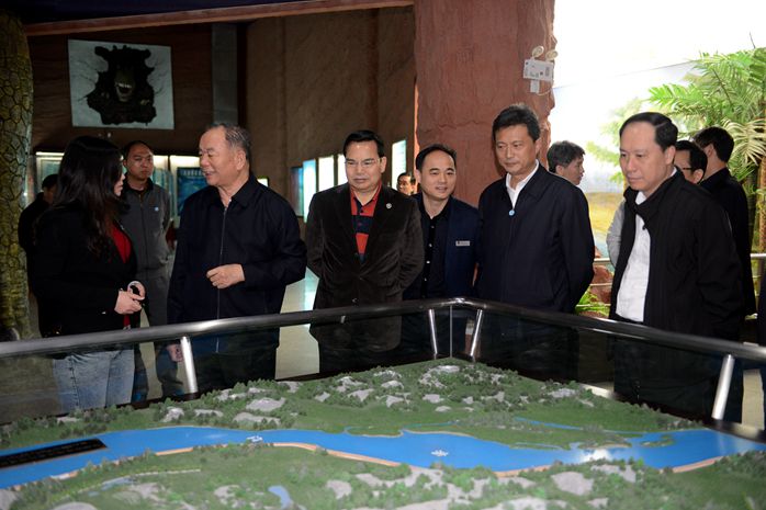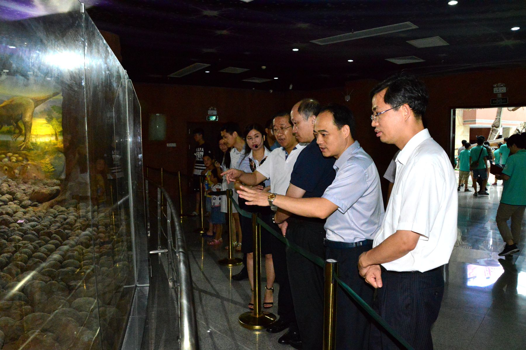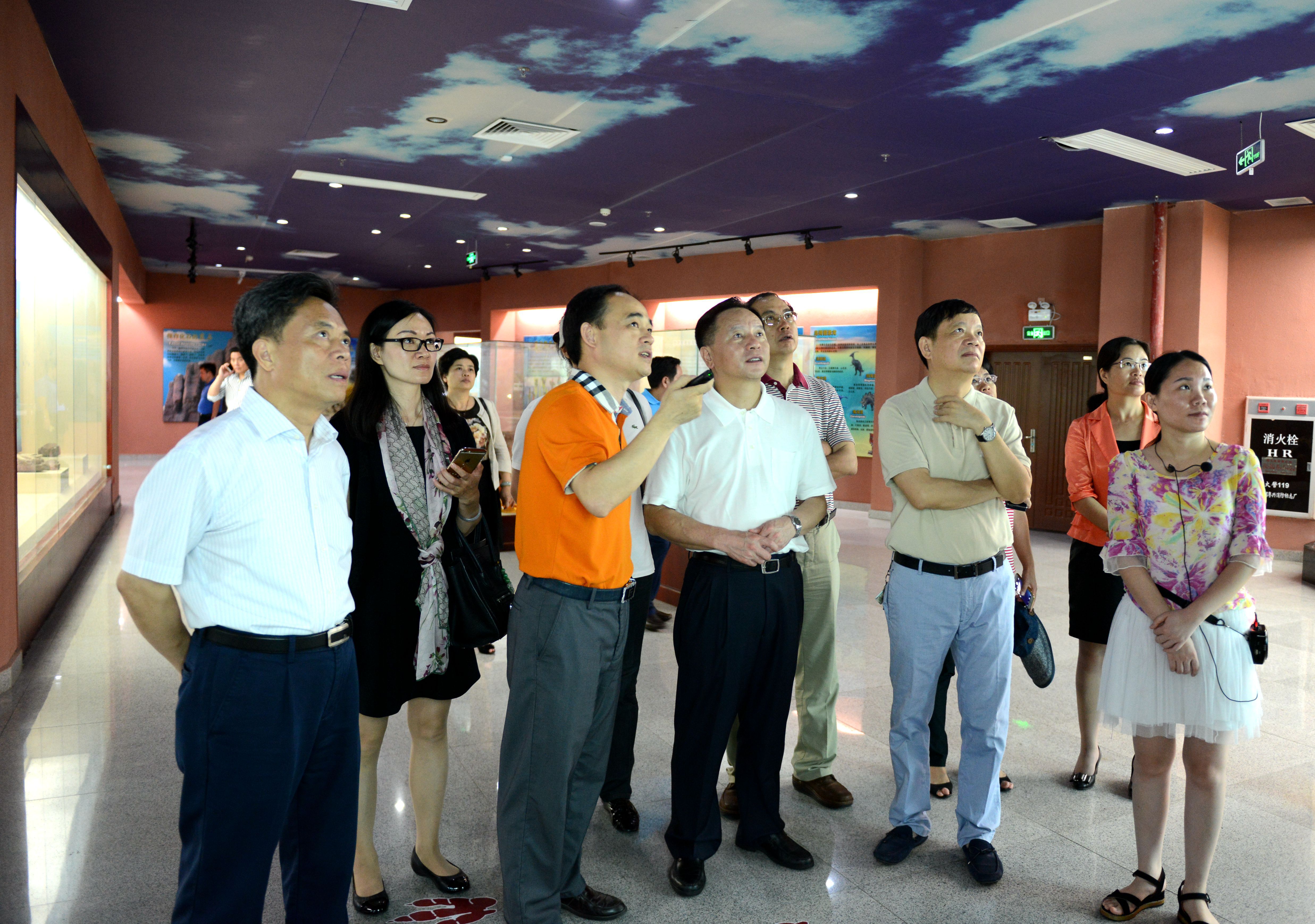 2016年8月12日,在市委常委、宣傳部部長吳善平(左一)的陪同下,廣東省委宣傳部常務(wù)副部長鄭雁雄(左二)一行到河源恐龍博物館考察調(diào)研。