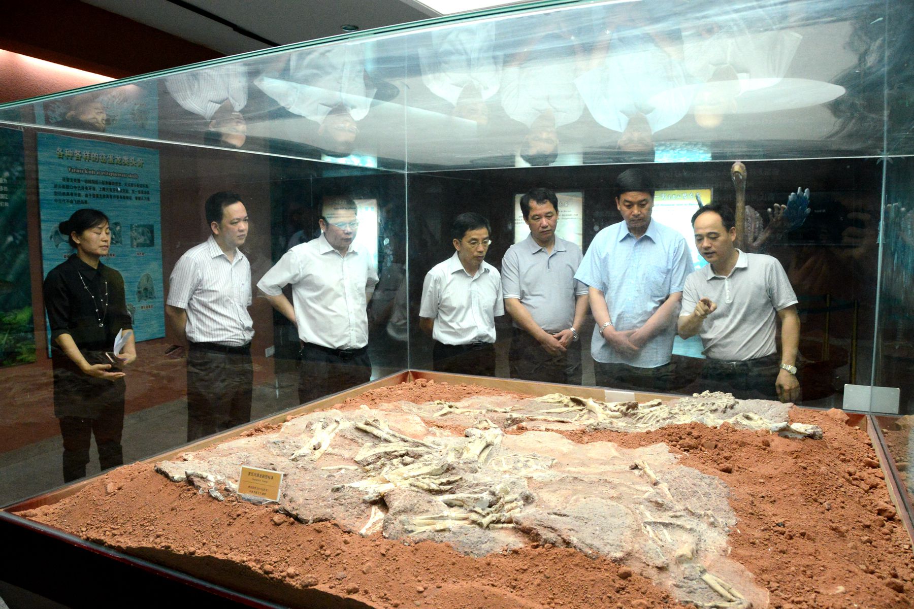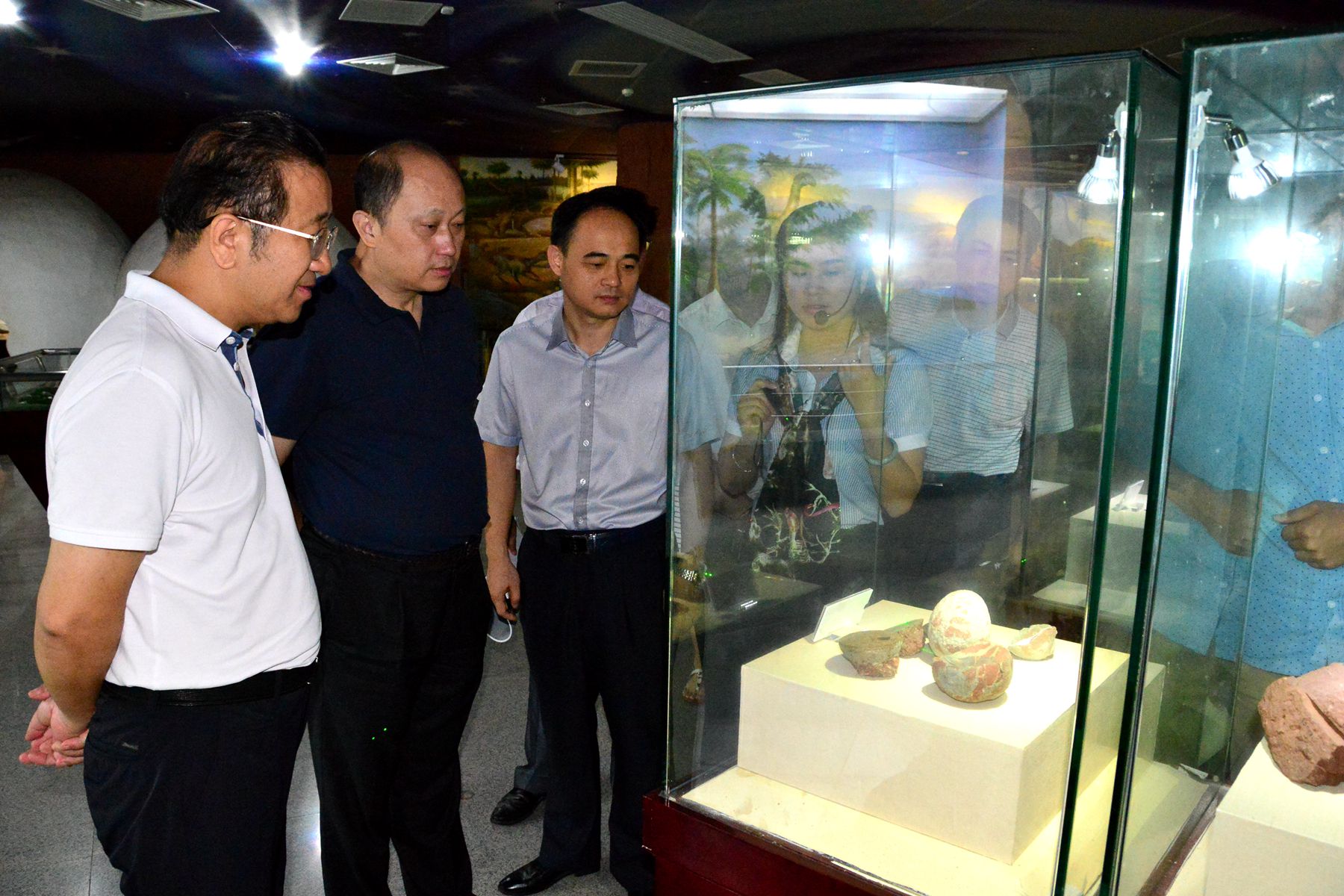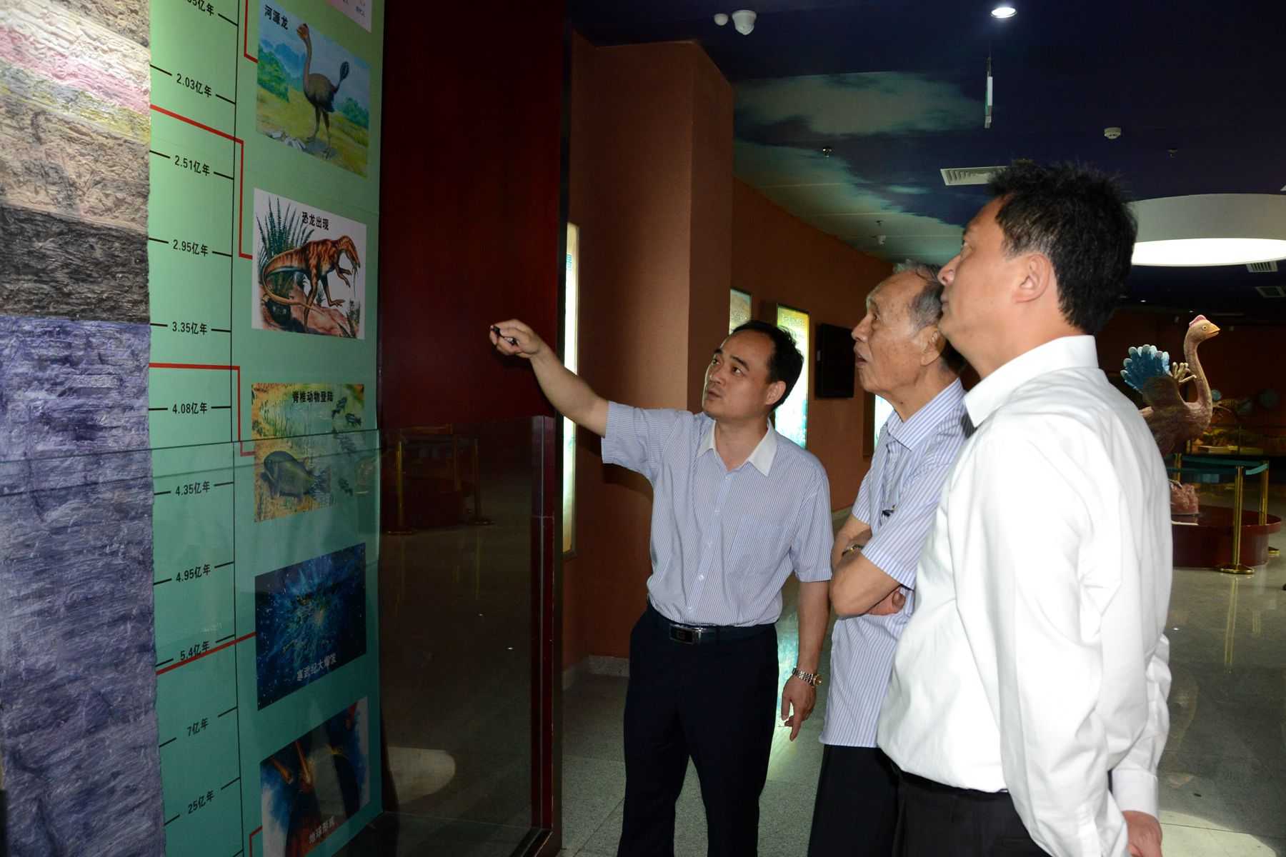 2016年8月12日,在市委常委、宣傳部部長吳善平(左一)的陪同下,廣東省委宣傳部常務(wù)副部長鄭雁雄(左二)一行到河源恐龍博物館考察調(diào)研。