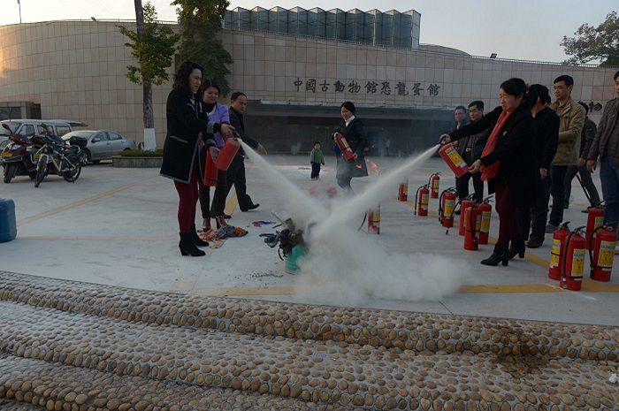 為增強(qiáng)員工的消防意識,掌握消防滅火操作技能,以應(yīng)對可能發(fā)生的突發(fā)事件,2015年1月9日下午和10日下午,市博物館組織全體員工分兩組在恐龍博物館停車場舉行了消防滅火演練。