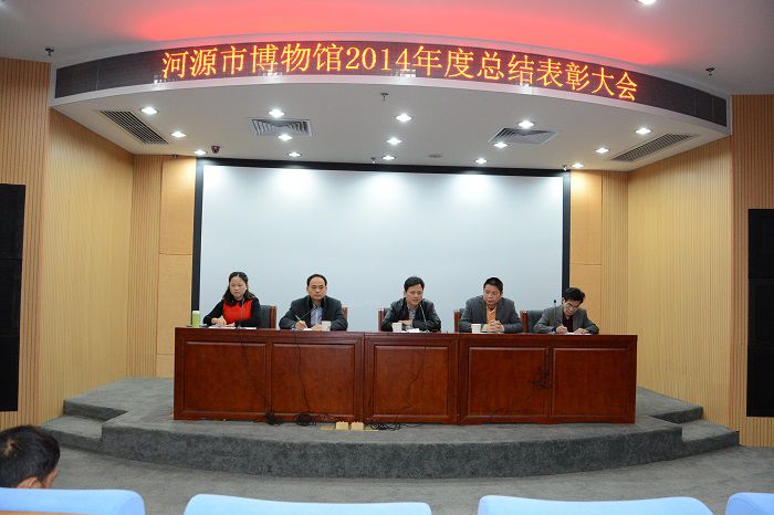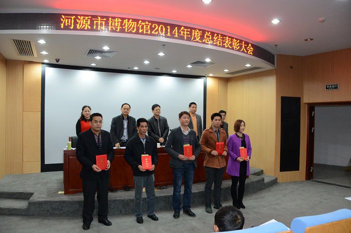 2015年3月2日,河源市博物館在3D電影放映室召開2014年度總結(jié)表彰大會,總結(jié)2014年工作,部署2015年工作任務(wù),表彰優(yōu)秀人員。河源市文廣新局黨組書記、局長梁偉光出席會議并講話,市博物館副館長溫慶生宣讀了《關(guān)于表彰2014年度先進(jìn)工作者的決定》和《關(guān)于獎勵2014年度文博專業(yè)中級職稱獲得者的決定》,局長梁偉光、副局長駱滿星、市博物館館長杜衍禮等為相關(guān)人員頒獎??偨Y(jié)表彰大會由市博物館副館長賴金鳳主持。