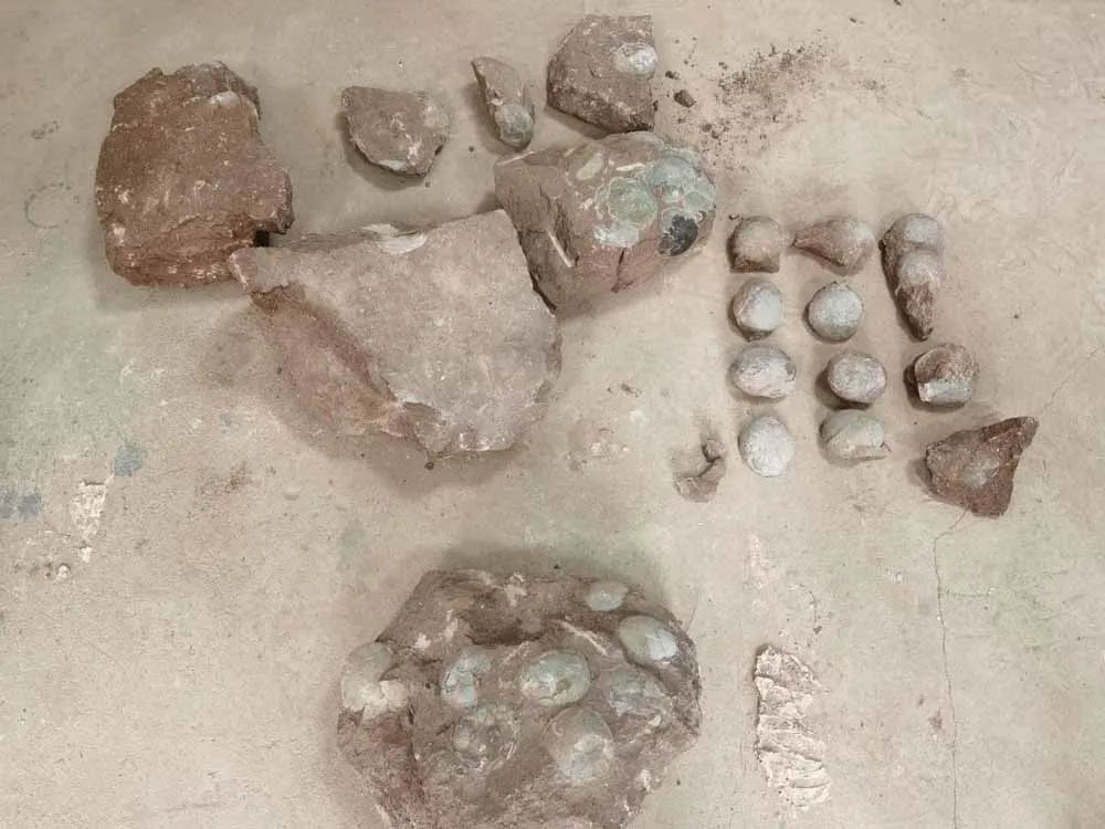 現(xiàn)場查獲的恐龍蛋化石。